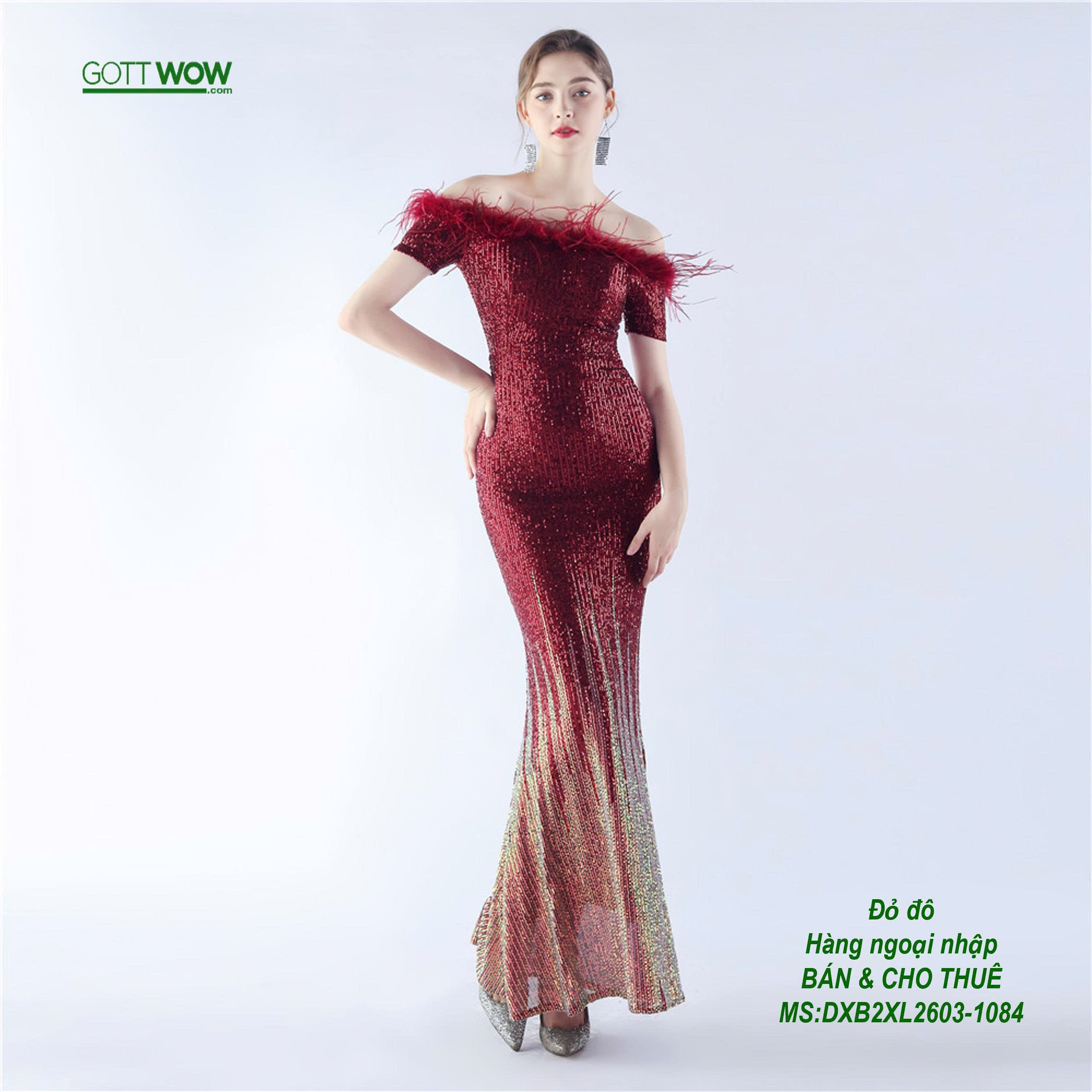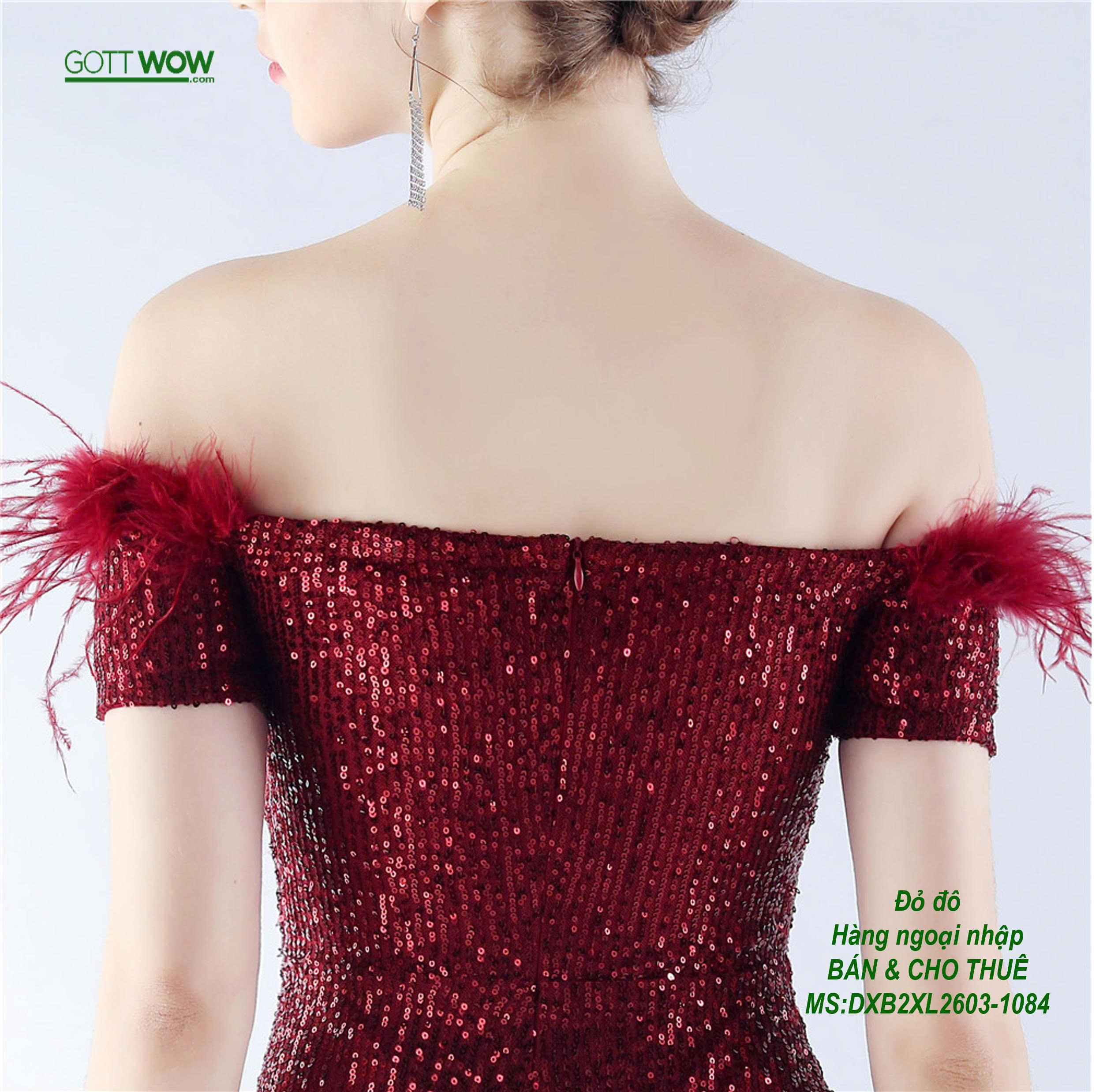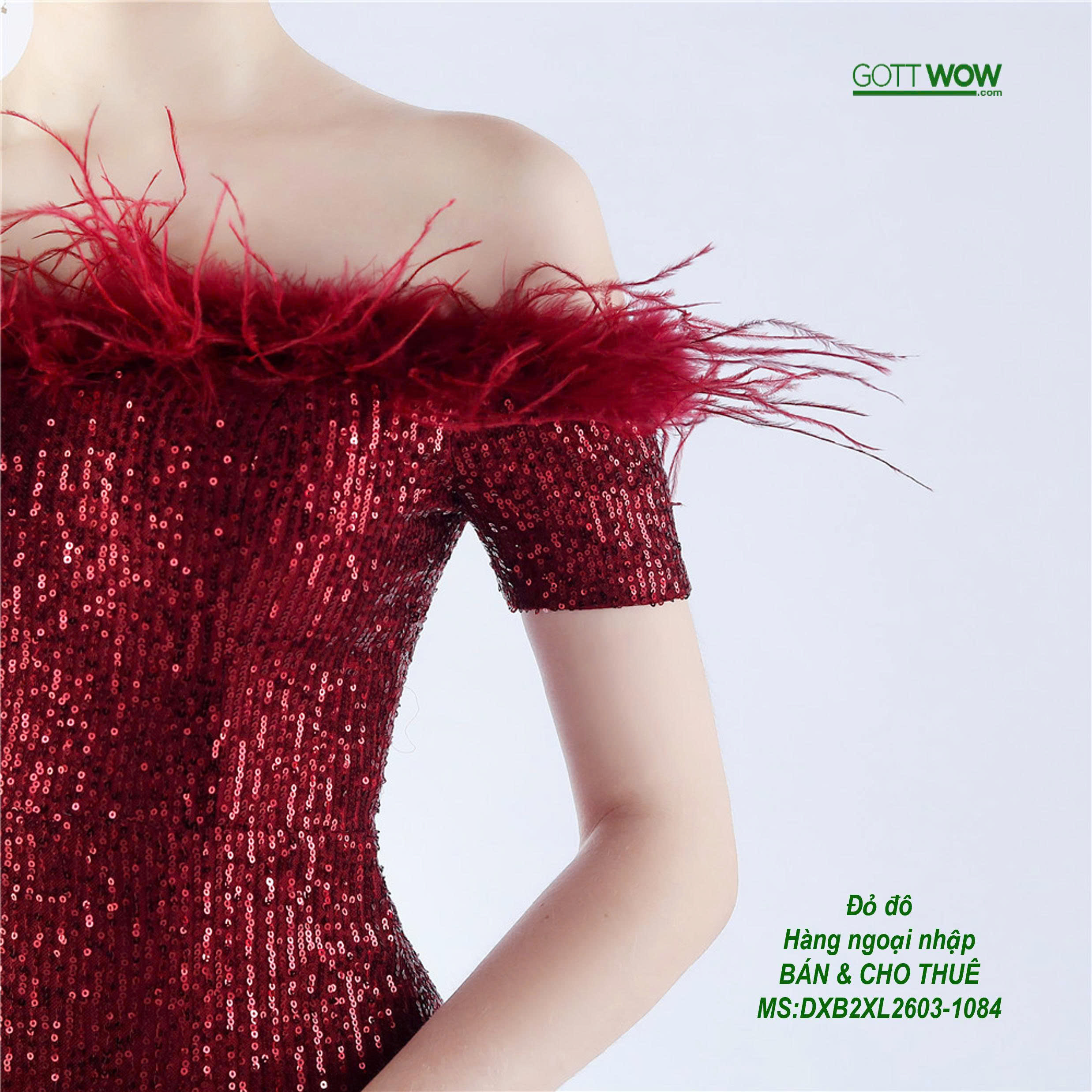 Hãy là người đầu tiên nhận xét “Đầm dạ hội trễ vai lông đẹp sang ấn tượng (eo 80-90cm) – MS: D1084 Đỏ đô”